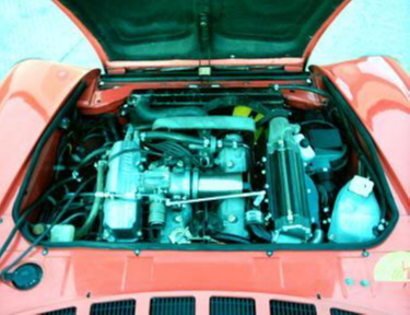 Durch die große Erfahrung im Bau von Kompressor-Motoren, das G+B Logo weist darauf hin, war es für uns kein Problem eine Kompressoranlage für den 124 Spider zu bauen. Wir haben bereits über 200 Kompressor-Motoren, hauptsächlich für japanische Geländewagen und verschiedene Einzelstücke, gebaut. Der verwendete Kompressor ist ein vielfach verbautes Aggregat, das für wesentlich höhere Leistung vorgesehen ist. Das System wird auf einer separaten Halterung neben dem Motor angebracht und von der Kurbelwelle aus mit einem Zahnriemen ständig angetrieben. Über eine gaspedalabhängige Bypasssteuerung wird im Normalfahrbetrieb überschüssige Ansaugluft umgeleitet. Der Motor läuft somit im Teillastbetrieb als völlig normaler Saugmotor. Durch Gasgeben wird die Bypassklappe geschlossen, der Ladedruck ist sofort da, es stehen 225 Nm Drehmoment bei 4500 Umdrehungen und 116,4 KW/ 158 PS bei 5350 Umdrehungen zur Verfügung. Dabei ist es egal, ob man bei 120 km/h Gas gibt oder aus dem Stand (z.B. von der Ampel weg) voll beschleunigt. Am Motor werden, außer einer speziellen Zylinderkopfdichtung, keine Veränderung vorgenommen. Er ist ausreichend stabil und hat sogar noch Leistungsreserven. Ein wassergekühlter Ladeluftkühler, der übrigens dann auch für die Turbo-Spider nachgerüstet werden kann, ist in Vorbereitung.