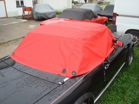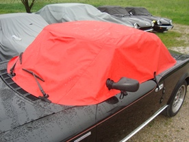 Unsere Abdeckplanen werden passgenau von einem Sattler angefertigt. Sie werden an den Persenninghaken, Türgriffen, Spiegeln und Scheibenwischern mit Klettbändern befestigt. Das Material ist wasserdicht, UV beständig und die Nähte sind extra wasserdicht verklebt. Es stehen die Farben schwarz, rot und bordeaux zur Auswahl.